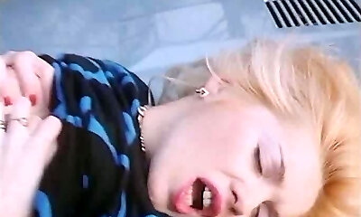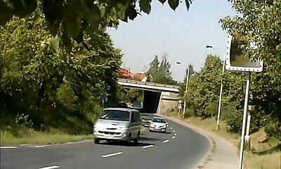 Magnificent classic busty blondie in the car gives head to her fellow