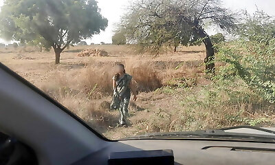 Huge-titted and beautiful soldier girl fucks in the field