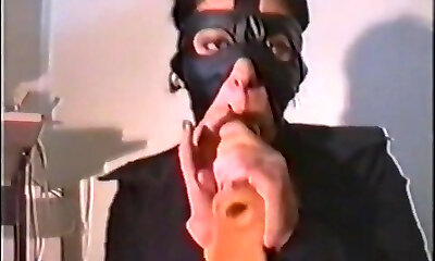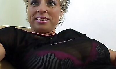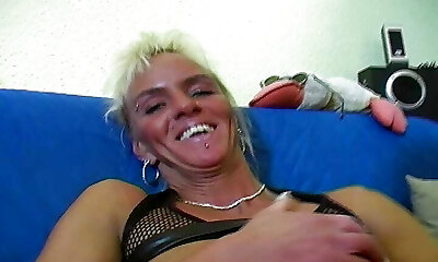 Slim and old German blonde enjoys wedging her dildo deep inside