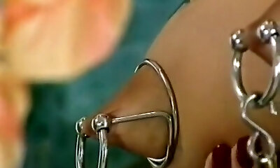 Stunning looking German dame in stocking gets her juicy muff pierced