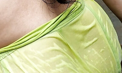 Indian house wifey bathing outside