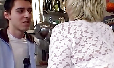 Towheaded German granny gets her cunt pleased by a young stud
