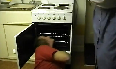 Omi laesst sich vom Mann Ihrer Tochter in der Kueche ficken
